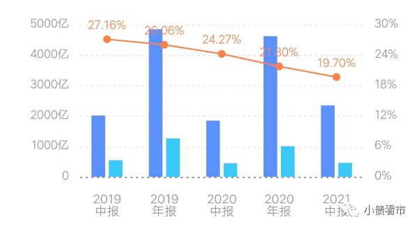 值得注意的是,碧桂園本就不高的毛利率,近年來持續走低,2021年上半年其毛利率和凈利率分別為19.7%和9.54%,盈利能力欠佳。