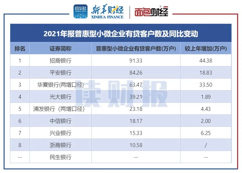較2020年末相比,所有股份制行普惠小微企業貸款均呈雙位數增長。