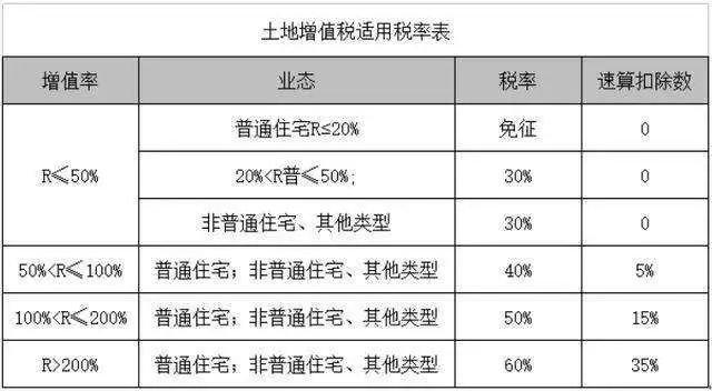 土增稅=增值額×適用稅率-扣除項目金額×速算扣除系數,其中增值額=轉讓房地產收入-扣除項金額。
