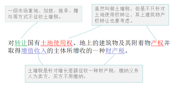土增稅征稅對象是指有償轉讓國有土地使用權及地上建筑物和其他附著物產權所取得的增值額。土地價格增值額是指轉讓房地產取得的收入減除規定的房地產開發成本、費用等支出后的余額。土地增值稅實行四級超率累進稅率。
