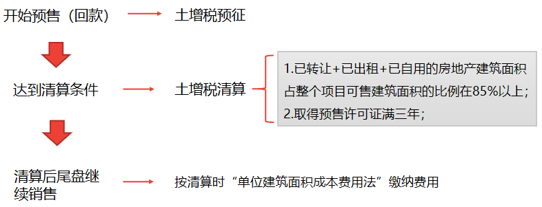 為確保稅款平穩,均勻的流入國庫,在房地產預售發生時即采取土增稅預征,通常按銷售收入的一定比例征收(具體比例各地不一)。