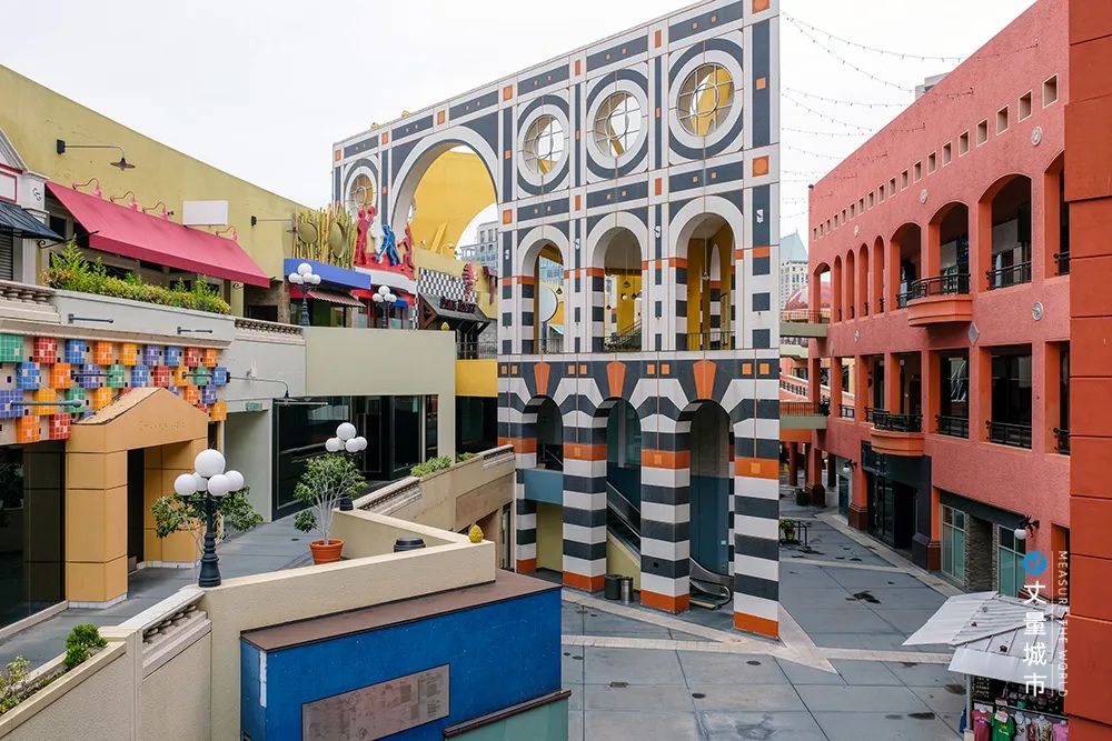 之所以被奉為商業(yè)傳奇,首先是建筑自身極富特色——建筑整體色彩絢麗;商業(yè)綜合體中間開(kāi)出的峽谷一樣的步行街,空間變化多樣,富有探索性。霍頓廣場(chǎng)也是設(shè)計(jì)師Jerde的得意之作,是商業(yè)「體驗(yàn)式建筑」的開(kāi)創(chuàng)。