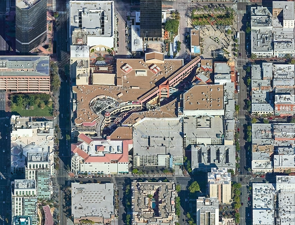 霍頓廣場(chǎng)占據(jù)了城市中心6.5個(gè)街區(qū),建筑面積7萬(wàn)多平米,由著名的捷得(Jerde)規(guī)劃設(shè)計(jì)公司在1985年設(shè)計(jì)而成。