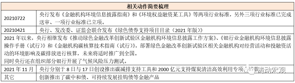 (1)目前央行等部門在綠色金融領(lǐng)域已經(jīng)做很多工作,除下表中所呈現(xiàn)的內(nèi)容外,數(shù)據(jù)上看截至今年三季度末,我國綠色貸款余額已接近15萬億元,綠色債券余額達到1.02萬億元。目前綠色信貸在全部綠色金融產(chǎn)品的比例仍高達90%,而自今年5月開始擴大了對金融機構(gòu)綠色金融評價的范圍,即把綠色債券業(yè)務也納入評價,并將評價結(jié)果納入央行金融機構(gòu)評級。