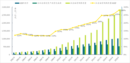 社融視角:2008年之后宏觀變量中社融攀升、債務驅動型增長特征顯著。