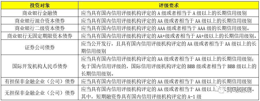 2012年7月16日保監(jiān)會(huì)發(fā)布的《保險(xiǎn)資金投資債券暫行辦法》(保監(jiān)發(fā)〔2012〕58號(hào))和2019年1月25日銀保監(jiān)會(huì)發(fā)布的《關(guān)于保險(xiǎn)資金投資銀行資本補(bǔ)充債券有關(guān)事項(xiàng)的通知》明確了保險(xiǎn)資金投資債券時(shí)有評(píng)級(jí)方面的要求。可以看出,對(duì)非金融企業(yè)債券來(lái)說(shuō),評(píng)級(jí)至少應(yīng)為AA級(jí)(短融可為A-1級(jí))。