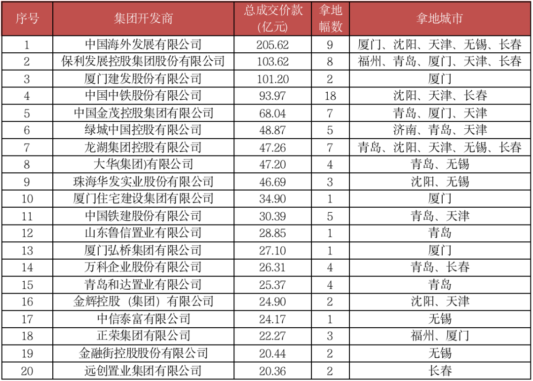 注:因企業聯合拿地,部分地塊存在重復計入表格成交價款和拿地幅數的情況