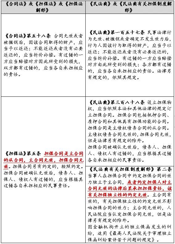 對上述裁判思路進(jìn)行梳理后發(fā)現(xiàn),法院最后得出兩自然人承擔(dān)擔(dān)保責(zé)任的結(jié)論是建立在“進(jìn)而”認(rèn)定成立的基礎(chǔ)上。但對于債務(wù)加入人加入一個無效的債務(wù),該債務(wù)加入是否有效的問題,由于債務(wù)加入與保證(連帶責(zé)任保證)在功能上相類似,債務(wù)加入的效力認(rèn)定在一定程度上可參照保證的效力認(rèn)定,而對于主合同無效法律后果所作擔(dān)保的擔(dān)保合同效力,目前主流觀點(diǎn)認(rèn)為應(yīng)屬無效。本次《最高人民法院關(guān)于適用<中華人民共和國民法典>有關(guān)擔(dān)保制度的解釋》第二條更是明確支持了這一觀點(diǎn),即“當(dāng)事人約定擔(dān)保人對主合同無效的法律后果承擔(dān)擔(dān)保責(zé)任,該有關(guān)擔(dān)保獨(dú)立性的約定無效”。退一步講,即使認(rèn)定該債務(wù)加入有效,表面上看擔(dān)保人是對該加入債務(wù)所作擔(dān)保,但對于擔(dān)保人而言,債務(wù)加入人與主債務(wù)人屬同一層級,擔(dān)保人本質(zhì)上仍屬于對原債務(wù),即對無效合同所作擔(dān)保(或?qū)χ骱贤瑹o效的法律后果所作擔(dān)保),擔(dān)保合同仍將歸于無效。