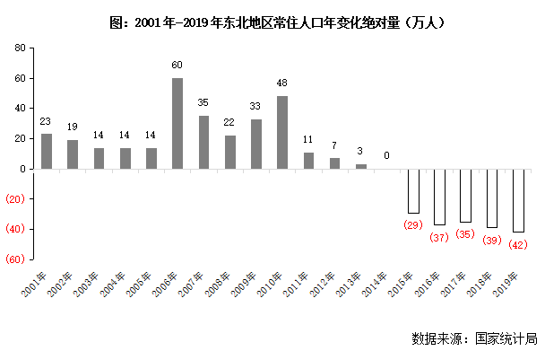 隨著經(jīng)濟(jì)增長動力愈發(fā)落后于中東西部地區(qū),勞動人口逐漸由資源日漸枯竭的東北地區(qū)向經(jīng)濟(jì)富足地區(qū)轉(zhuǎn)移,人口流失現(xiàn)象逐年嚴(yán)重。
