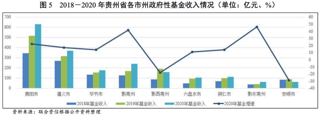各地州市中,貴陽(yáng)市和遵義市財(cái)政實(shí)力較強(qiáng),一般公共預(yù)算收入質(zhì)量較好,其中貴陽(yáng)市財(cái)政自給率最高,政府綜合財(cái)力近一半由政府性基金預(yù)算收入貢獻(xiàn),政府債務(wù)負(fù)擔(dān)較重;其余地州市財(cái)政自給率較低,對(duì)上級(jí)補(bǔ)助收入依賴大。