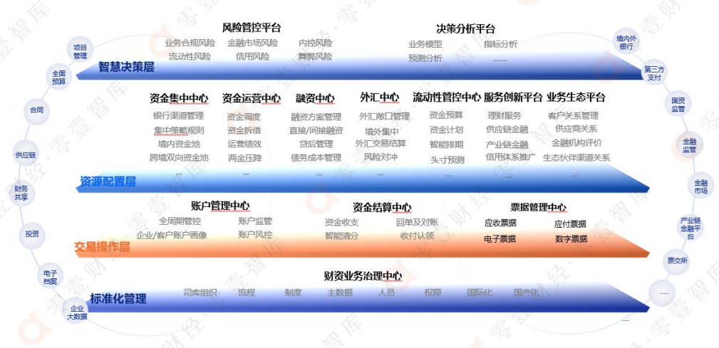 司庫并非是近些年市場才提出的新概念,其核心仍是資金的管理活動,以信息系統(tǒng)為管理平臺融入智能化、數(shù)字化手段,對公司以及企業(yè)的金融資源進行合理分配、辨別并控制金融風險,司庫管理超越了傳統(tǒng)的現(xiàn)金預算、賬戶管理與短期流動性管理,逐步擴展到更多的資金管理功能。