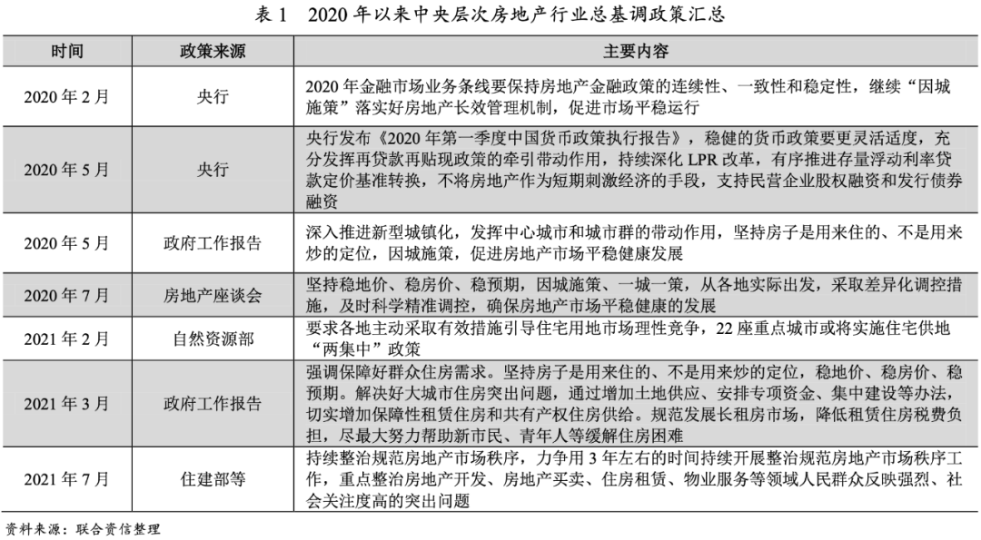 近些年,中央及地方層面發布多項對房地產行業的調控政策。2016年中央經濟工作會議首次提出“房子是用來住的、不是用來炒的”,隨后三年的中央經濟工作會議中均提到“房住不炒”。