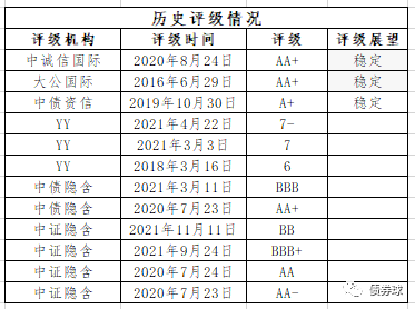 從歷史評級情況來看,中誠信和大公終止評級前,評級均為AA+,中誠信最近評級距今約一年半。而其他如YY、中債隱含和中證隱含,其評級均有下行趨勢,其中中債隱含和中證隱含下調幅度較大。其主要原因大概是最新評級時間距現在較近。