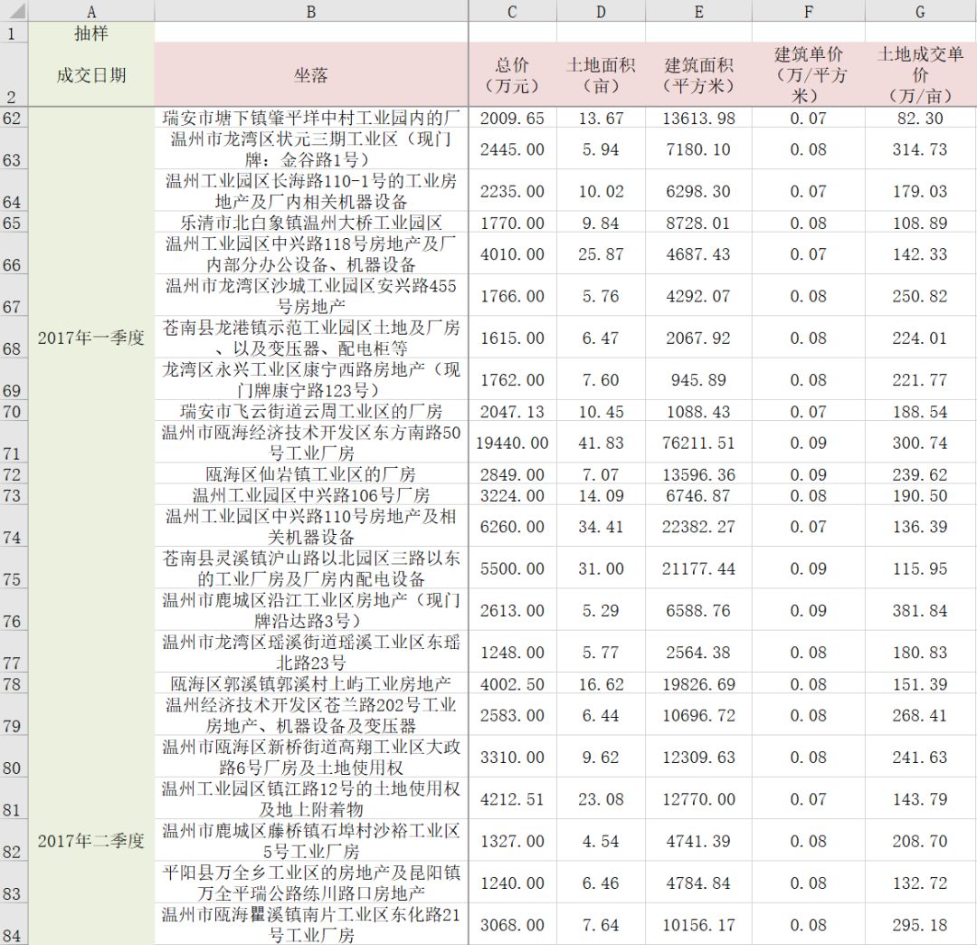 表3   部分溫州成交工業地價抽樣(數據來源淘寶司法拍賣,由后稷投資評估部匯總整理)