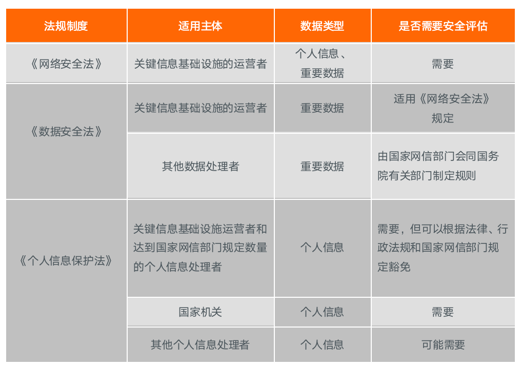 表:不同法規(guī)制度中對于數(shù)據(jù)出境安全評估的要求