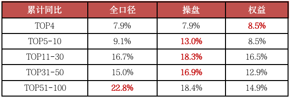 據(jù)克而瑞重點(diǎn)監(jiān)測(cè)的40家房企增速來看,增速在20%以上的房企有14家,從百?gòu)?qiáng)各梯隊(duì)房企不同口徑業(yè)績(jī)?cè)鏊賹?duì)比來看,前四強(qiáng)房企全口徑業(yè)績(jī)平均增速僅為7.9%,TOP5-10房企全口徑業(yè)績(jī)平均增速僅為9.1%。