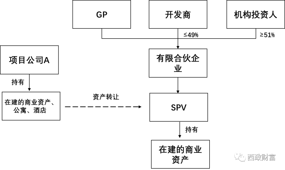 (一)在建的商業(yè)資產(chǎn)不可單獨(dú)分割轉(zhuǎn)讓的情況下的融資操作模式