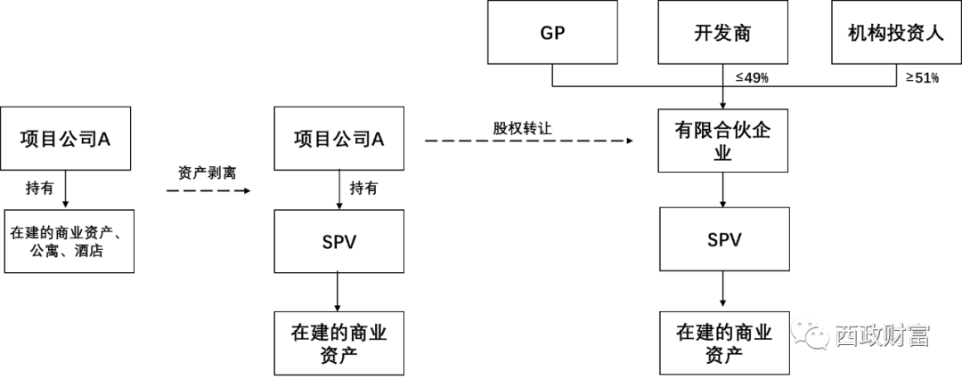 3. 新成立的合伙企業(yè)受讓項目公司A持有的SPV100%的股權(quán),并間接持有該在建商業(yè)物業(yè)。