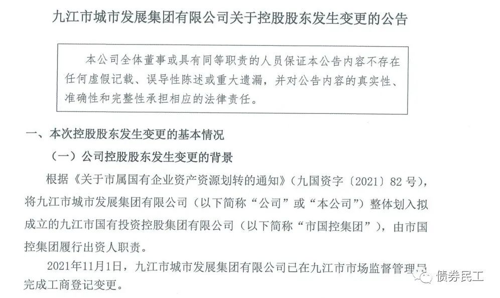 資產無償劃轉和資產置換之后,將區域內的重要國有資產進行了優化重組,實際上為新城投公司的形成和組建提供了基礎。比如九江市城市發展集團有限公司于2021年11月4日公告,公司整體劃入擬成立的九江市國有投資控股集團有限公司,由其履行出資人職責。九江市國有投資控股集團有限公司的注冊資本為100億元,暫無債券發行記錄。