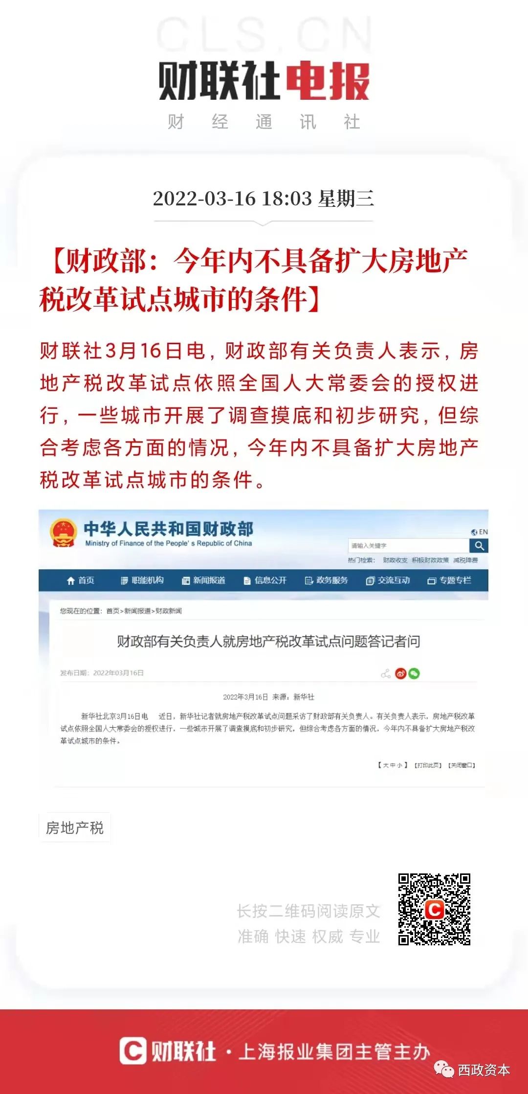 二、財政部:今年內不具備擴大房地產稅改革城市試點的條件