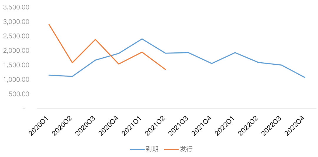 值得注意的是,2020年四季度以來房企發債及到期債券呈現“剪刀差”,房企發債量小于到期量,房企償債壓力一直處于承壓狀態。