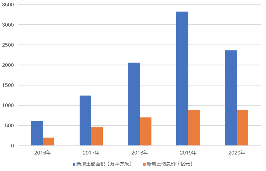 圖:金科2016-2020新增土儲規模