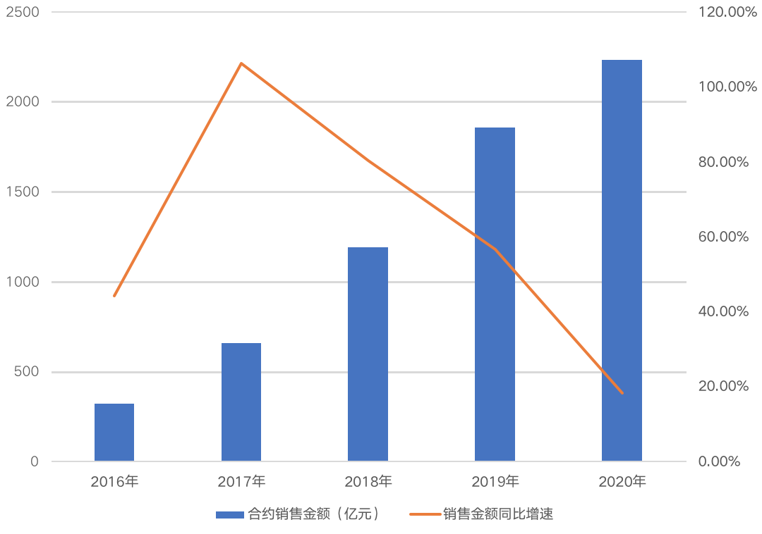 圖:金科2016年-2020年銷售金額及增速