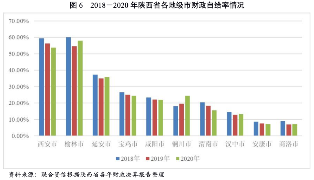 3.陜西省各地級(jí)市財(cái)政收入對(duì)發(fā)債城投企業(yè)債務(wù)的支持保障能力