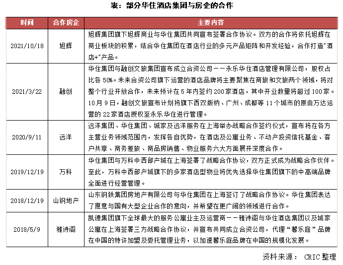 華住集團較快走出修復行情除了是因為集團主打的經濟型酒店相對而言在疫情的打擊下恢復較快,同時也是因為企業旗下管理加盟和特許經營酒店的業績增長迅速,收入占比達到了37.1%,是歷年來的最高值。華住集團很早開始就推進輕資產化,從2016年開始其管理加盟及特許經營酒店占比就超過了80%,截至2021年中期這一數字為85%,繼續保持在高位。在這個背景下,華住集團與房企也開始積極合作以擴大酒店運營規模,比如在今年3月和融創成立了合資公司永樂華住,此后融創又在10月9日將原來由萬達酒店運營的22家酒店交于永樂華住運營。此前,華住還和遠洋、萬科、山鋼地產、雅詩閣等企業有戰略合作,加上此次跟旭輝達成合作,其輕資產擴張更進一步。
