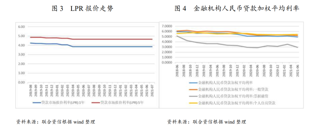 社會融資成本方面,2021年,央行貨幣政策堅持“穩(wěn)字當(dāng)頭,不急轉(zhuǎn)彎”的政策思路,年內(nèi)LPR報價保持穩(wěn)定;截至2021年6月,金融機(jī)構(gòu)人民幣加權(quán)平均利率為4.93%,創(chuàng)2018年6月以來新低,實體經(jīng)濟(jì)貸款利率下行,而個人住房貸款利率受房地產(chǎn)嚴(yán)監(jiān)管影響有所上升。