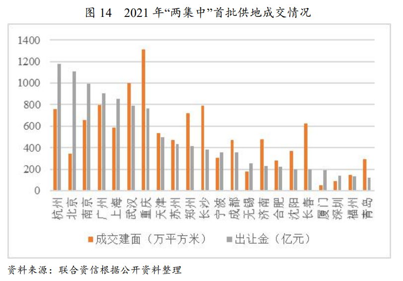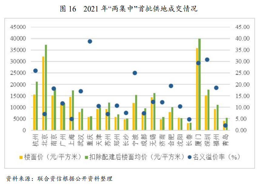 從首批土地集中供應(yīng)政策的實施結(jié)果來看,部分城市土地競拍規(guī)則的引入加大了競拍的隨機(jī)性和拿地成本,但核心城市、核心區(qū)域土地?zé)岫热跃S持高位,市場競爭激烈,不同城市或同一城市不同地塊的土地溢價率呈現(xiàn)分化。