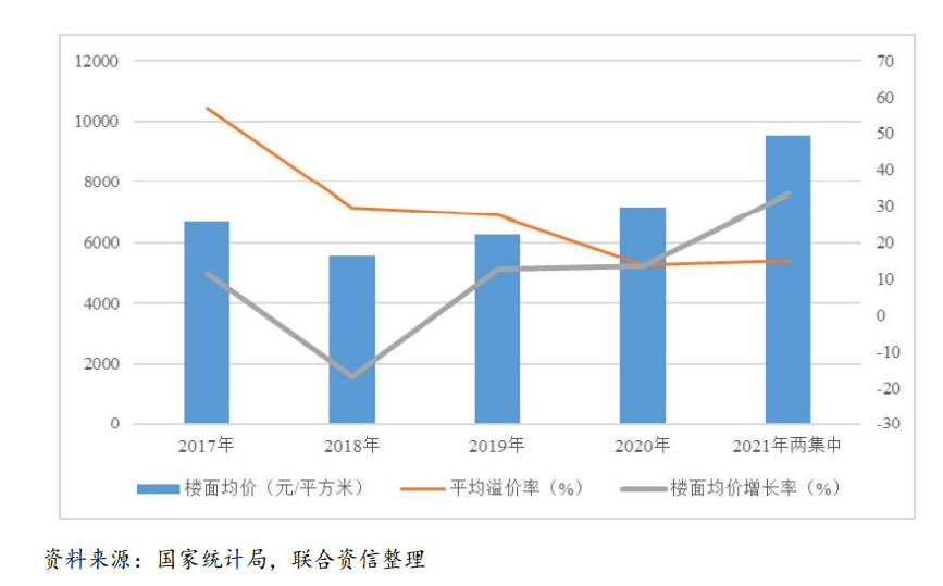 溢價率方面,2021年“兩集中”首批供地成交平均溢價率較2020年上升幅度不大,但其并不能反映真實拿地價格的變化以及成交熱度。一方面,土地出讓過程中的起拍價格的上升變相推升了實際的成交價格;另一方面,部分地塊達(dá)到溢價率上限之后,轉(zhuǎn)入“競配建”“競自持”階段,真實地價及成交熱度體現(xiàn)不甚明顯。樓面均價方面,2021年“兩集中”首批供地樓面均價增幅已達(dá)近年新高,若剔除配建及其他投資條件影響,真實土地價格增速將進(jìn)一步上升。