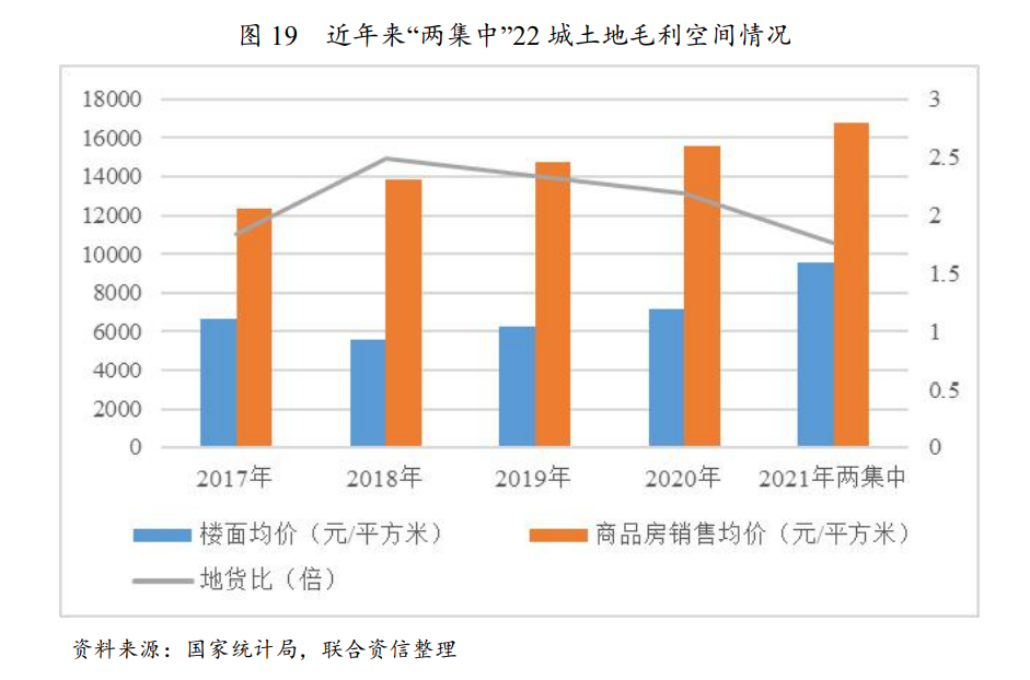 近年來,土地毛利空間持續(xù)壓縮,2021年首批供地新增拿地項目的平均盈利水平處于近年來新低,隨著第二次集中供地競拍規(guī)則的積極調(diào)整,行業(yè)盈利空間有望得到邊際修復(fù)。