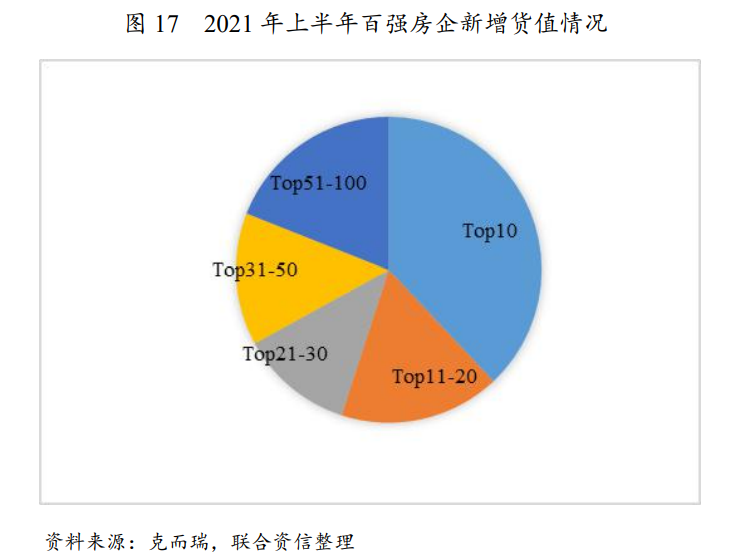 從上半年各梯隊百強(qiáng)房企新增貨值來看,TOP10房企新增貨值占百強(qiáng)房企的38%,TOP11~30占29%,短期來看,強(qiáng)者恒強(qiáng)的趨勢并未改變,在首批集中供地影響下投資集中度將進(jìn)一步提升,馬太效應(yīng)凸顯,行業(yè)洗牌與分化加劇。