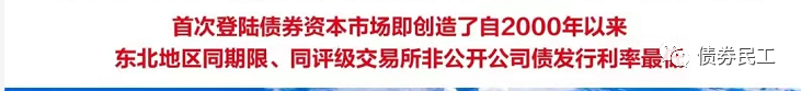 5、強調特定時間+特定區域+特定期限+特定評級+特定產品利率最低的海報,比如發行利率創2000年以來、東北地區、同期限、同評級、非公開發行公司債券最低票面利率。