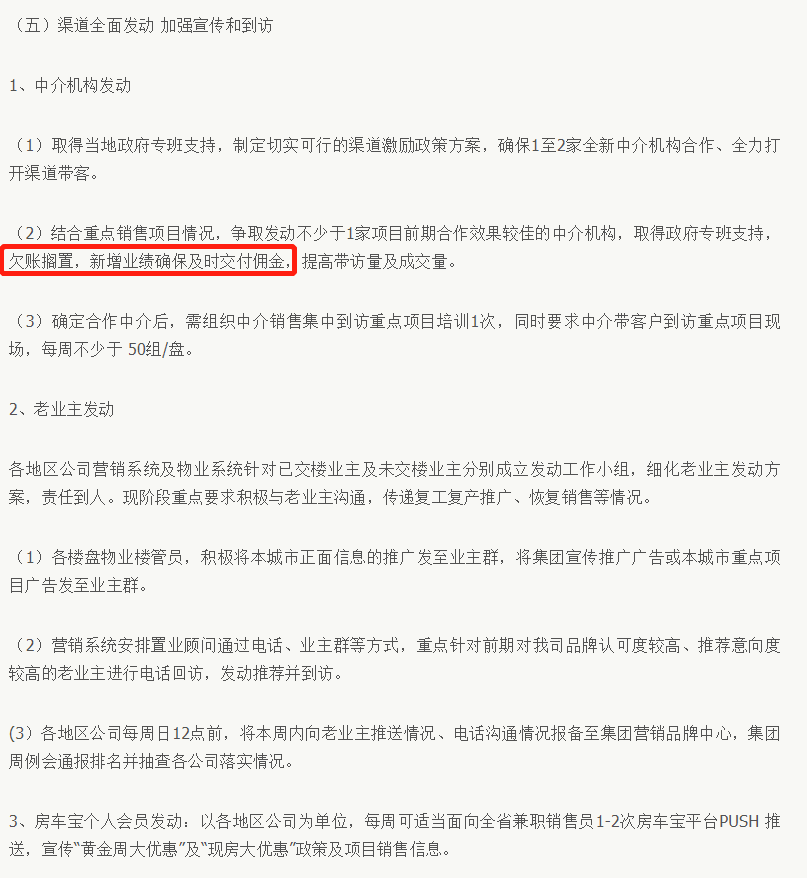 以前欠的傭金不計前嫌,現在賣的房子盡快結傭,且通過銷售回款優先結傭。