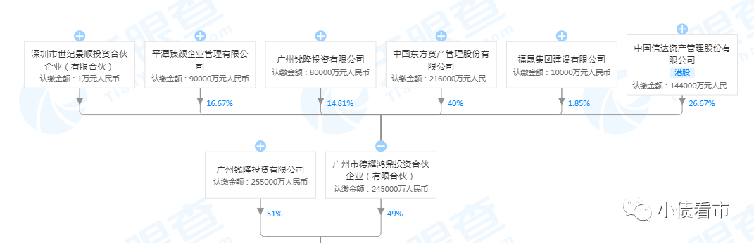 值得注意的是,福晟集團的第二大股東德耀鴻鼎,是為福晟集團紓困的資金平臺,各紓困方通過該平臺,幫助福晟解決債務問題,該平臺六位合伙人分別是東方資產、中國信達、平潭臻顏、錢隆投資、福晟集團建設及世紀景順。