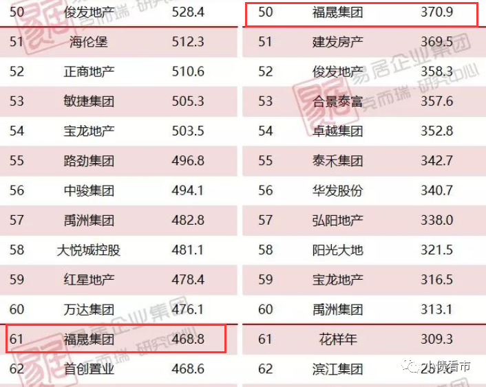 據克而瑞數據顯示,2019年福晟集團以468.8億操盤金額在房企中排名第61位;以370.9萬平方米操盤面積排名第50名,位于百強房企之列。