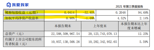 而進入2021年三季度,我愛我家的業績開始遇到壓力。