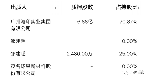 截至2022年2月11日,海印股份控股股東海印集團質押公司股份數(shù)量6.88億股,占其持有股份的70.87%,質押比例較高。