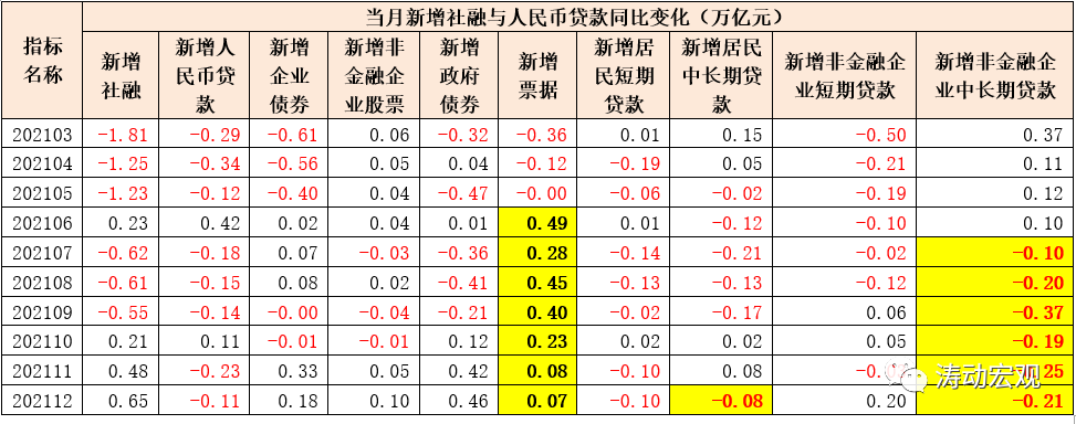(二)2021年7-12月,企業中長期貸款同比分別少增0.10萬億、0.20萬億、0.37萬億、0.19萬億、0.25萬億與0.21萬億,連續6個月同比少增,6個月合計同比少增1.33萬億。