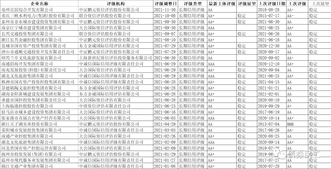 從公開數據來看,在嚴監管的情況下,2020年年以來債券發行人主體信用等級調升的數量有了很大的下降,難度大幅提升。比如以城投公司為例,根據wind資訊的統計數據2021年全年只有27家城投公司實現了主體信用評級提升。