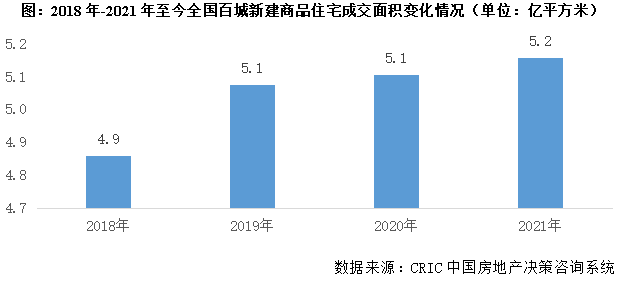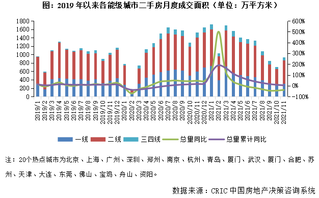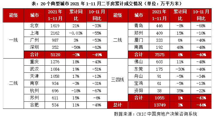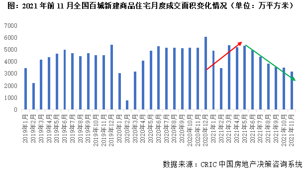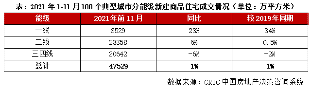 CRIC數(shù)據(jù)統(tǒng)計(jì)顯示,全國100個(gè)典型城市2021年前11月商品住宅成交面積合計(jì)47529萬平方米,同比增1%。