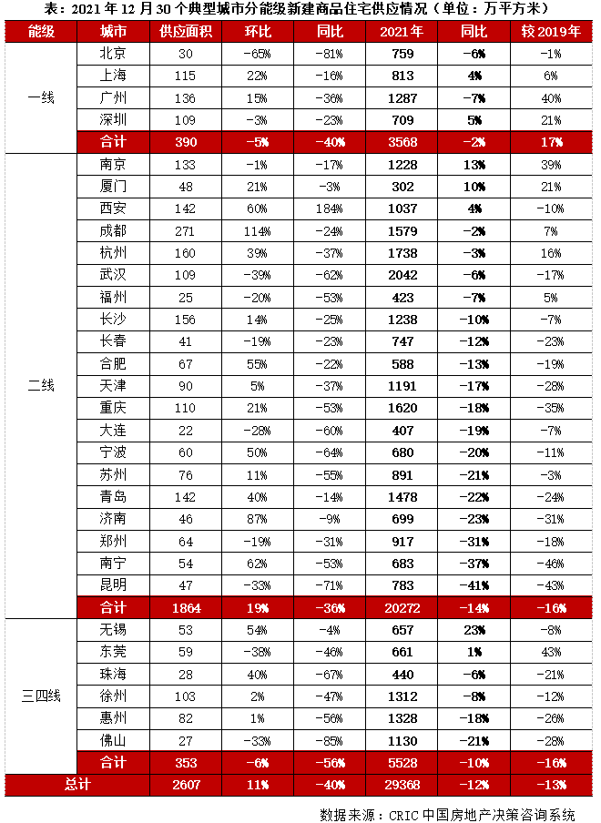 通過估算30個(gè)重點(diǎn)城市12月供應(yīng)量,預(yù)計(jì)全年商品住宅供應(yīng)面積同比降幅較前11月進(jìn)一步擴(kuò)大。
