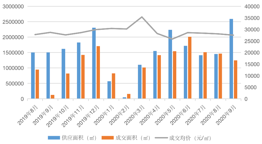 圖:2019年8月-2020年9月新建商品住宅月度供求量價