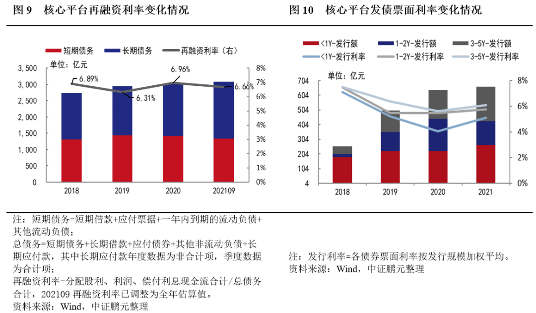 五大核心平臺(tái)整體再融資利率變化不大,債券發(fā)行利率走勢分化,市場依然偏謹(jǐn)慎。2019年,由于鎮(zhèn)江隱性債務(wù)置換的傳言發(fā)酵,鎮(zhèn)江城投平臺(tái)公開市場的債券發(fā)行規(guī)模大幅提升,且利率明顯下降;但2020年,受永煤債違約事件影響,不同期限債券發(fā)行利率走勢出現(xiàn)結(jié)構(gòu)性分化,鎮(zhèn)江城投平臺(tái)短期債券的認(rèn)可度明顯提升;而2021年以來城投整體融資政策邊際收緊,推高了城投債各期限的發(fā)行利率。總體來看,五大核心平臺(tái)整體再融資利率變化不大,債券發(fā)行利率中長期未有顯著下降,市場依然偏謹(jǐn)慎。