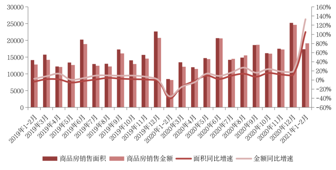 2021年前2月,房地產市場逐漸走出疫情影響,并呈現出“淡季不淡”的特點。