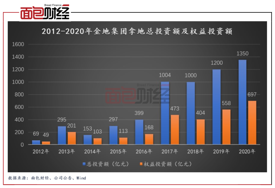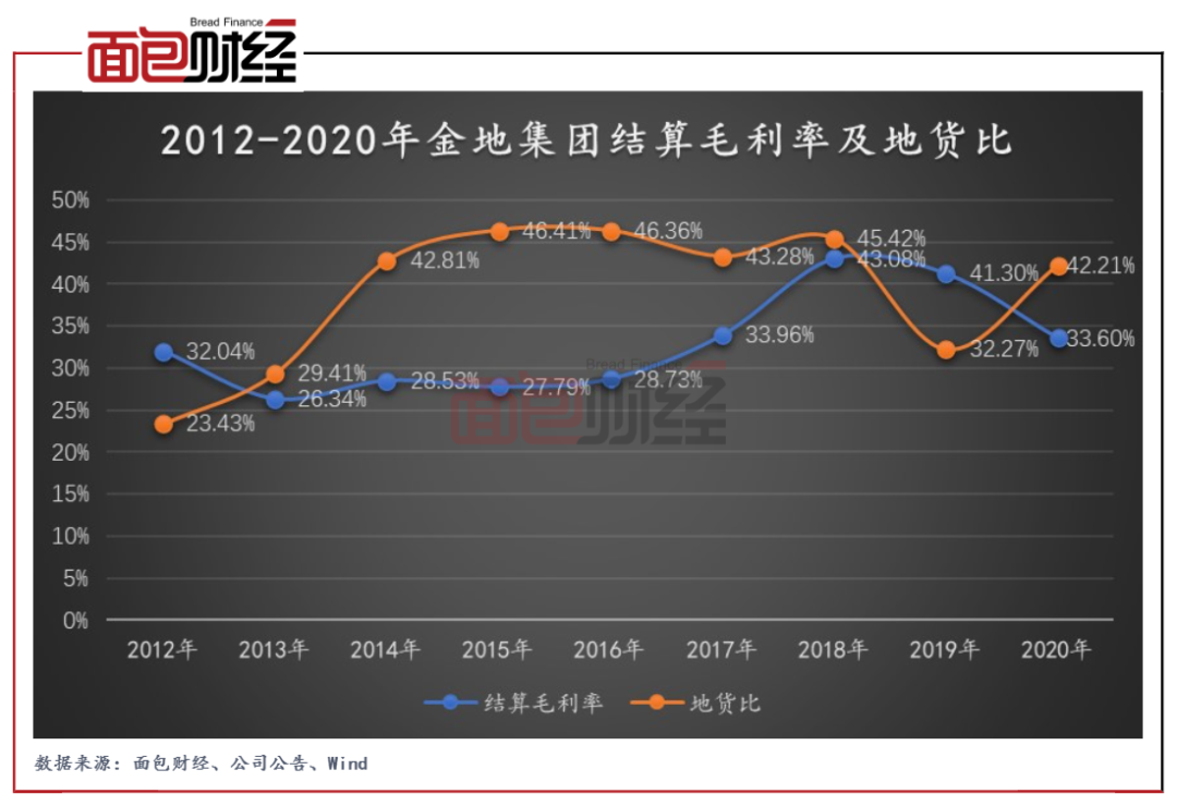 按照房地產(chǎn)行業(yè)的特性,結(jié)算毛利率相對(duì)來說是滯后的,從拿地毛利率兌現(xiàn)到結(jié)算毛利率,可能與融資成本、推盤節(jié)奏和結(jié)算結(jié)構(gòu)有關(guān)。追溯金地集團(tuán)過往拿地及銷售數(shù)據(jù),自2016年開始,公司尋求銷售規(guī)模的快速增長,與之匹配的拿地儲(chǔ)備也全面加速。