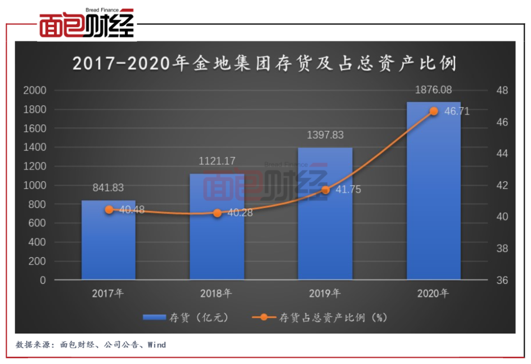 截至2020年末,公司存貨為1876.08億元,占總資產(chǎn)的比例為46.71%,占比處近年來高位,未來仍存在減值風(fēng)險(xiǎn)。