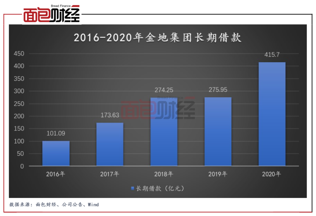 截至2020年底,金地集團(tuán)負(fù)債總額為3075.92億元,同比增長21.84%。其中長期借款415.7億元,同比增長50.64%,這可能是公司負(fù)債率上升的主要原因之一。